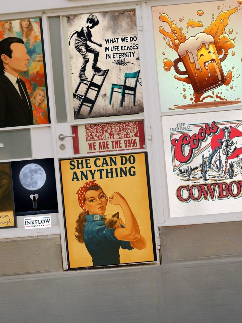 Transform your space with inspirational wall art and modern posters designed for home, office, or dorm decor.